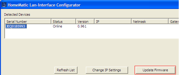 Mitgelieferte Software (oder Update von Seite http://www.eq-3.de/software.html) zum LAN-Konfigurations-Adapter installieren.